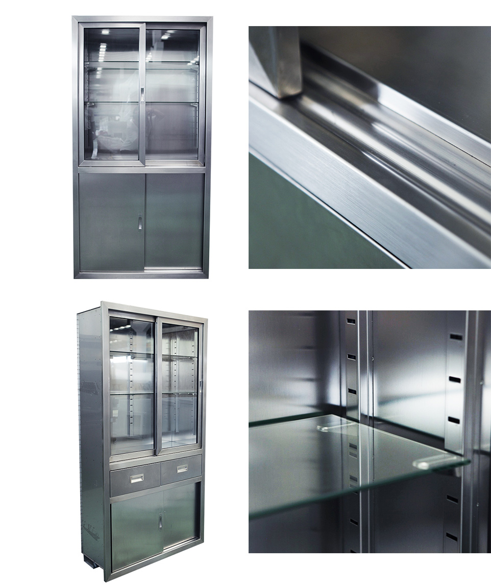 廠,實(shí)驗(yàn)室等各種小型器械的保管和存放,采用sus304不銹鋼板制作,上層為玻璃門,柜體內(nèi)部為圓弧造型,無(wú)死角易于清潔。
